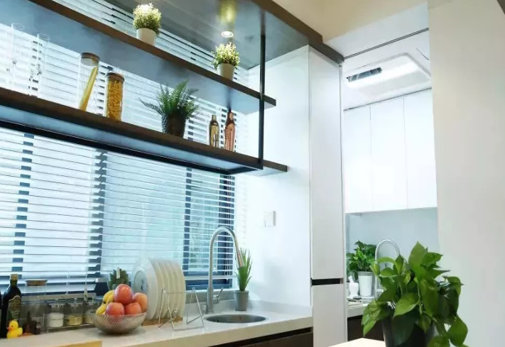 改造后,廚房被分隔出了中西廚兩個空間,解決了烹飪時的擁擠問題。設(shè)計師為業(yè)主考慮了大金高耐久廚房用嵌入式室內(nèi)機(jī)。小蔡在做中式爆炒菜肴時常常汗流浹背,很是煎熬;妻子小青擅長的西式甜點(diǎn)更需要恒溫的環(huán)境來保持食材的新鮮,這款廚房專用空調(diào)可以定點(diǎn)清涼科學(xué)送風(fēng),使人倍感舒爽。抗油污面板和濾網(wǎng),能保護(hù)機(jī)器的長久使用。